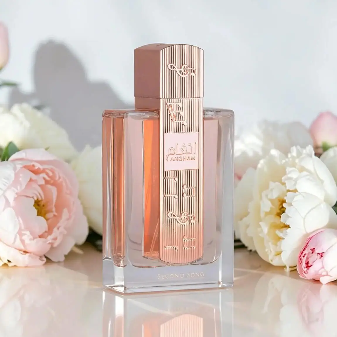 Orange flower & peony emerge at the heart, sheer and luminous, adding a confident floral softness, addictive praline creating a warm, indulgent trail that stays light refined and irresistibly wearable.