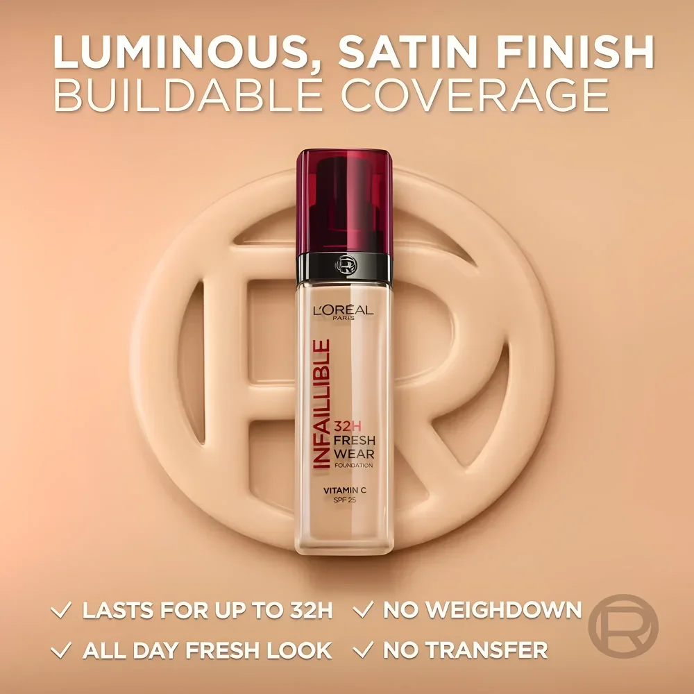 Get all-day confidence with the lightweight and breathable L’Oréal Infallible 32H Fresh Wear Foundation in shade 120 Vanilla, designed for a natural, fresh finish that lasts. Enriched with ingredients like glycerin for hydration and silica for oil control, it keeps your skin comfortable and shine-free. The 120 Vanilla shade suits light to light-medium skin tones with warm undertones, blending seamlessly for an even complexion. Perfect for everyday wear when you want long-lasting coverage without heaviness.