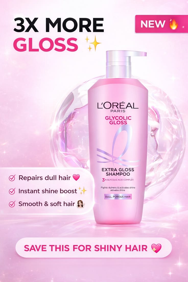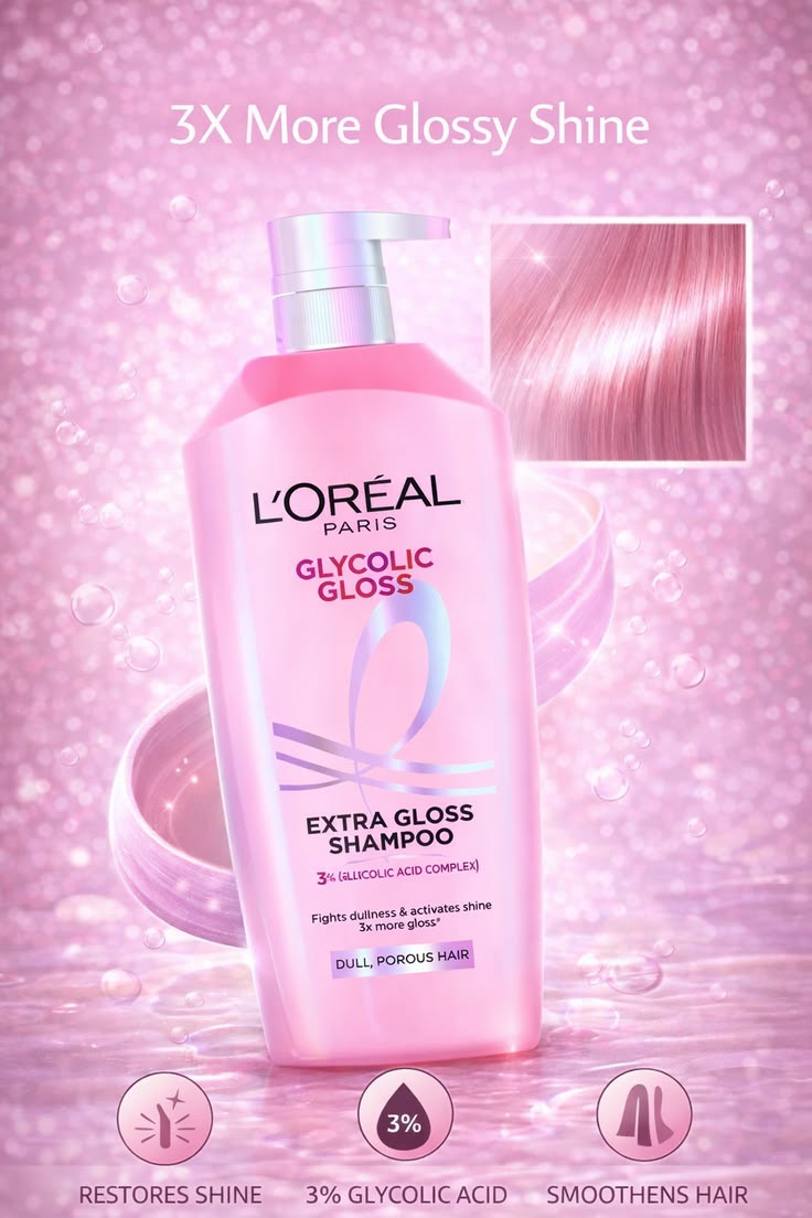 The L’Oréal Paris Glycolic Gloss Smoothing & Extra Gloss Shampoo (650ml) is a professional-grade brightening and smoothing cleanser from the Elvive Glycolic Gloss range. It is specifically designed for dull, porous, and lacklustre hair that has lost its natural shine due to environmental damage or heat styling.