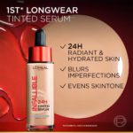 L’Oréal Paris Infallible 24H Fresh Wear Tinted Serum in the shade 6-7 Tan is the ultimate makeup-skincare hybrid for deeper complexions. Combining the pigment of a foundation with the high-potency hydration of a serum, it is specifically formulated with 1% Pure Hyaluronic Acid to plump the skin while providing a radiant, “your-skin-but-better” finish.