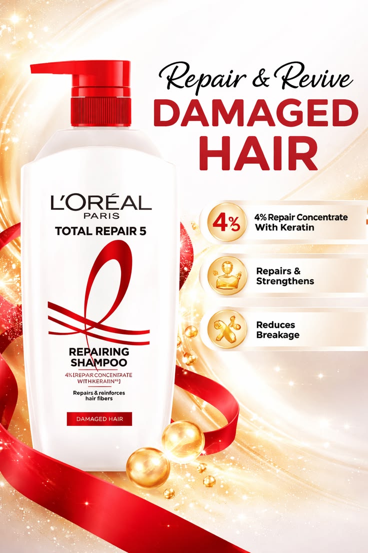 The L’Oréal Paris Total Repair 5 Repairing Shampoo (650ml) is a cult-classic hair care solution designed to combat the five most common signs of hair damage with a single, powerful formula. This economy-sized 650ml bottle is perfect for daily use, featuring a pump for convenience and long-term value.
