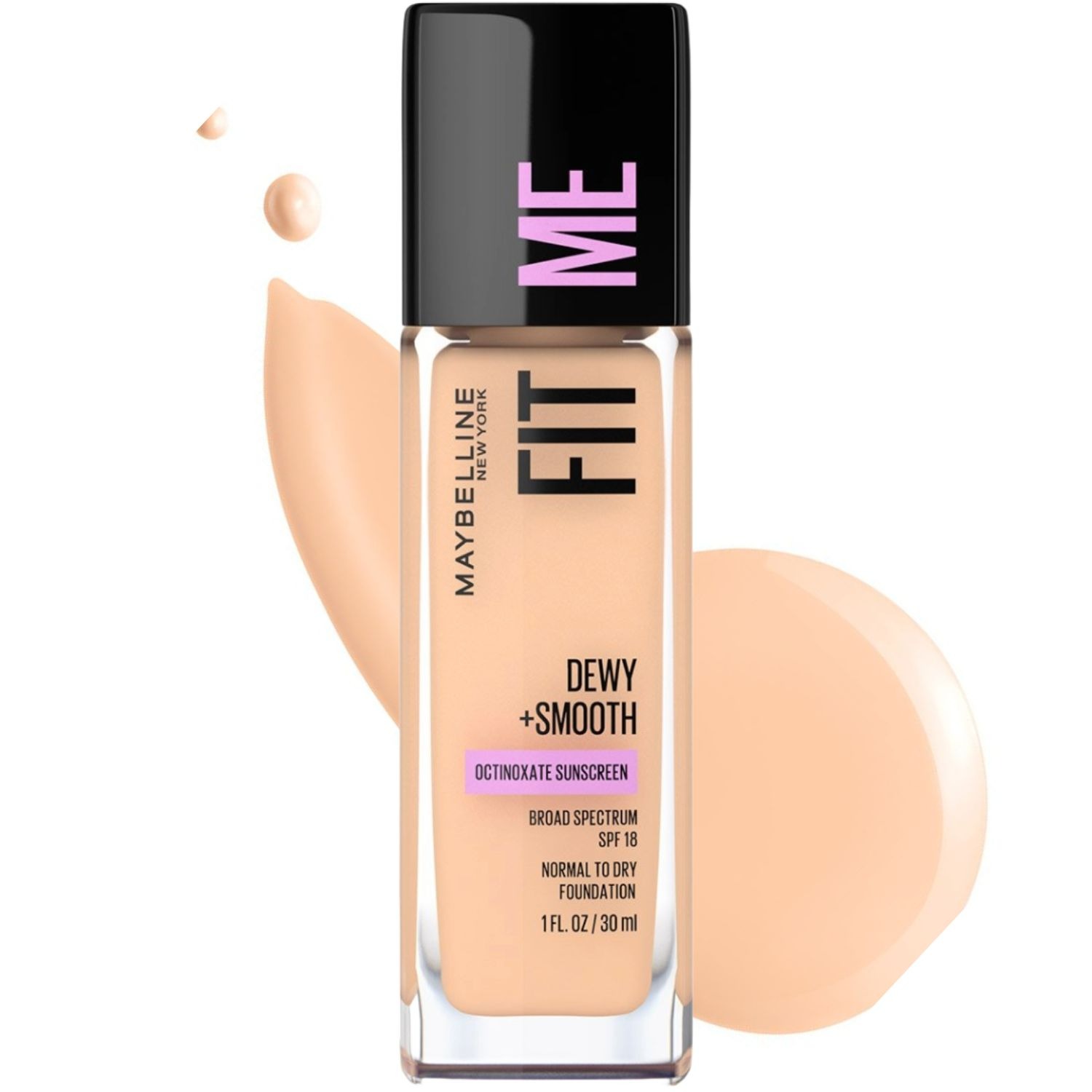 Maybelline Fit Me Dewy + Smooth Liquid Foundation – 120 Classic Ivory | Get a Naturally Radiant and Hydrated Look with SPF Protection in a Classic Ivory Shade. Enhance your skin’s natural glow with Maybelline Fit Me Dewy + Smooth Liquid Foundation in the shade 120 Classic Ivory, a light ivory. Specifically formulated for normal to dry skin, this hydrating foundation provides a dewy and smooth finish. Infused with moisturizing ingredients, it helps to improve skin texture and leaves your complexion looking radiant and healthy. The added Broad Spectrum SPF 18 helps protect your skin from sun damage. The buildable coverage allows you to customize your look from sheer to medium. Find your perfect Fit Me shade and shop now for a luminous and comfortable feel.