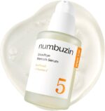 Numbuzin No. 5 Goodbye Blemish Serum (50ml) helps to minimize blemishes, acne marks, and dark spots, resulting in clearer, healthier-looking skin. It contains Panthenol and Vitamin C, which help to alleviate inflammation, stimulate skin repair, and brighten uneven skin tone. This serum is lightweight and absorbs quickly, making it suited for all skin types, including sensitive skin. Regular application promotes a smooth, bright, and even complexion.